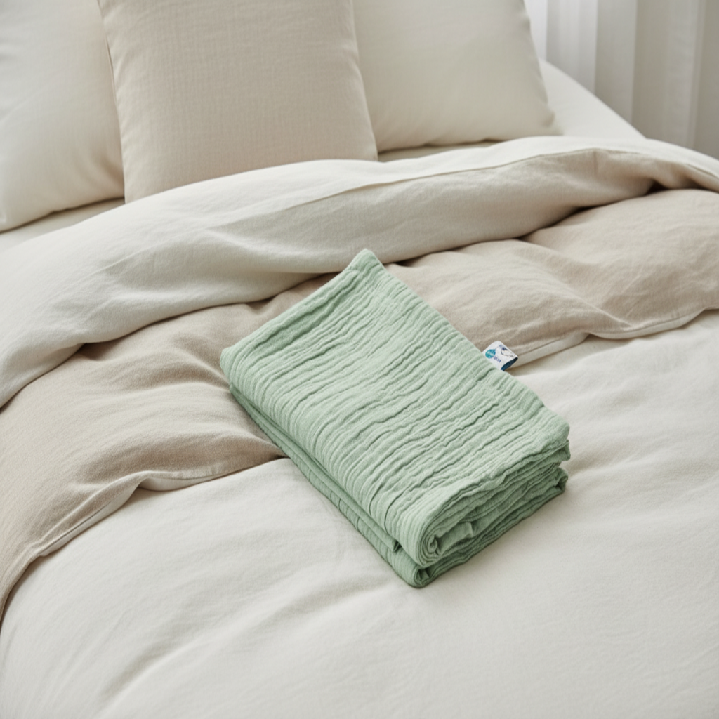 Gefertigt aus 100% Musselin-Baumwolle ist die Decke besonders luftig, weich und hautschonend. Musselin ist bekannt dafür, Temperatur gut auszugleichen – ideal für warme wie auch kühlere Tage. Außerdem bleibt das leichte, doppellagige Gewebe auch nach vielen Waschgängen wunderbar geschmeidig.