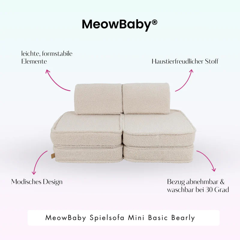 Unser Sofa wurde gezielt für die Bedürfnisse junger Familien entwickelt. Es ist weit mehr als nur eine Sitzgelegenheit – es ist eine kreative Zone für Spiel, Bildung und die persönliche Entfaltung Ihres Kindes. Das MeowBaby® Spielsofa wird Ihr Kind über Jahre hinweg begleiten und setzt einen stilvollen Akzent im Raum.