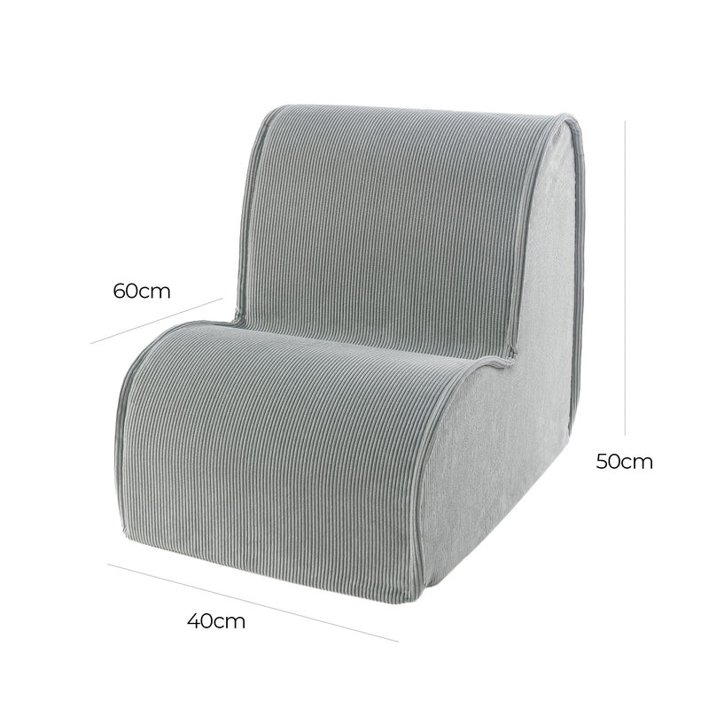 Der MeowBaby® Corduroy Sessel lädt Dein Kind zum Entspannen, Lesen oder Träumen ein. Mit seinen kompakten Maßen von 40 cm Breite, 60 cm Tiefe und 50 cm Höhe passt er perfekt in jedes Kinderzimmer und bietet kleinen Entdeckern einen gemütlichen Rückzugsort.